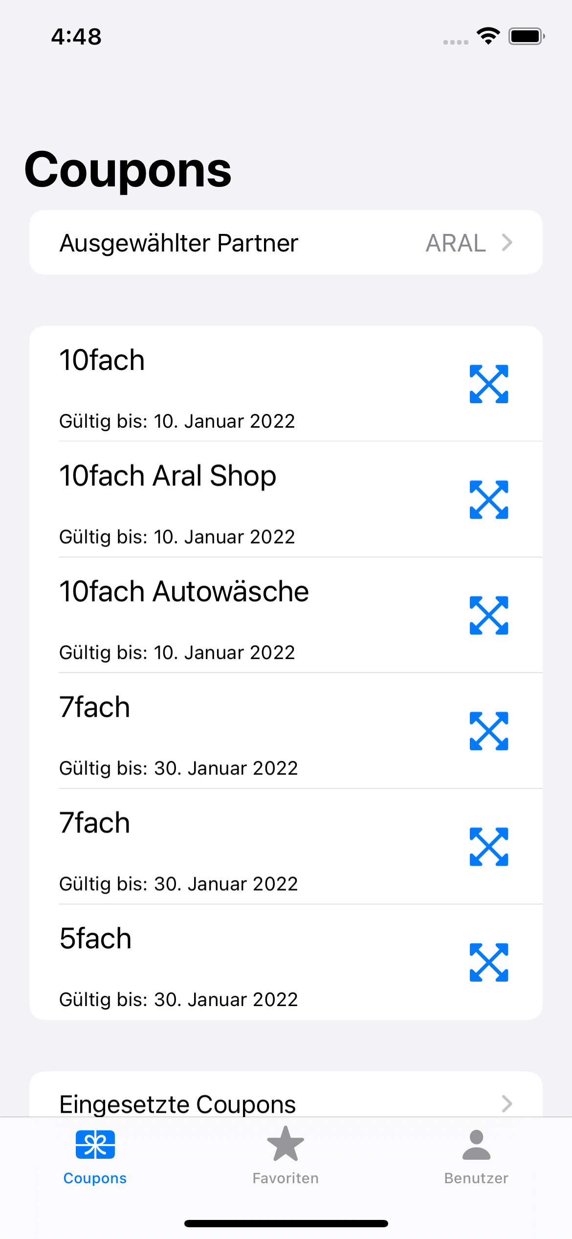 Die neuesten Coupons werden automatisch in der App angezeigt und verfügbar.